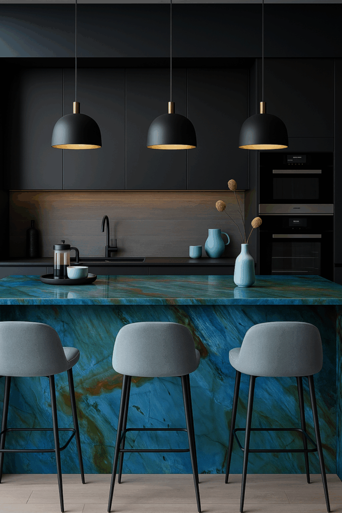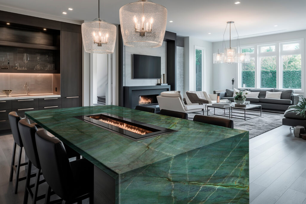 “Quartzite is beautiful and exotic. People often choose it when they’re looking for something different. It’s a great way to change up your space,” says Laura Grandlienard, owner of ROCKin’teriors in Raleigh, North Carolina.